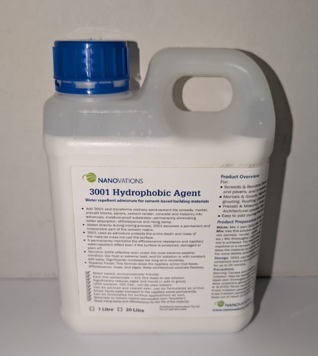 Nanovations 3001 Hydrophobic Agent for Permanent moisture Protection for Concrete, Mortar & Screed